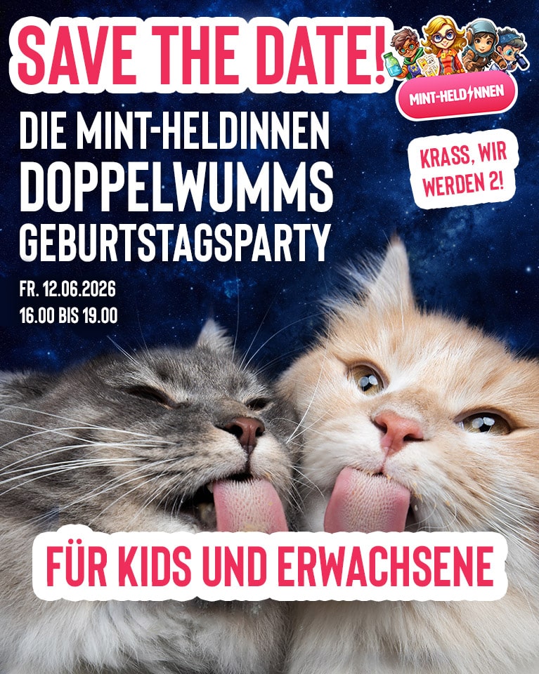 Do, 23.04.2026, 08:45 bis 15:00Im Hauptquartier der MINT-Heldinnen erwartet euch ein Tagesprogramm mit drei verschiedenen Workshops von denen ihr zwei auswählen werdet.
